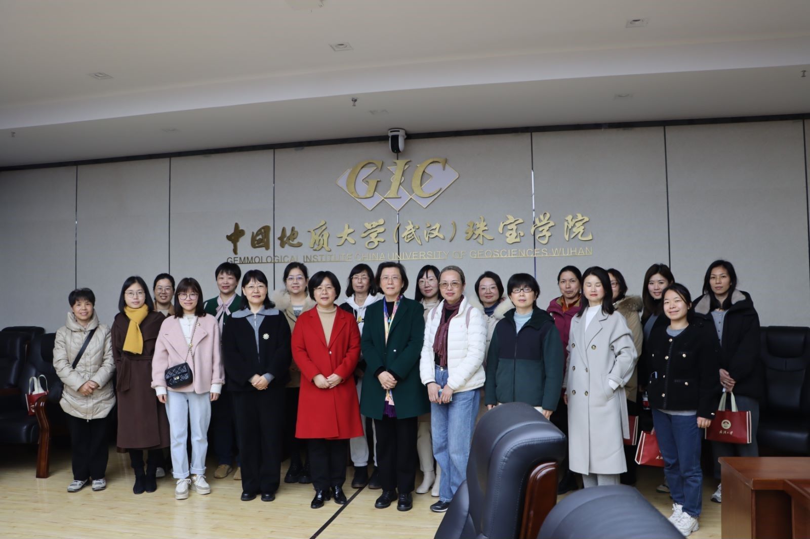为促进全员女教职工的身心健康,随后组织女教职工参观游览了地质大学珠宝学院,珠宝学院狄敬如老师就珠宝鉴赏相关知识开设了生动有趣的科普讲座,并带领大家在珠宝展厅、珠宝检测中心等地进行了实地参观。