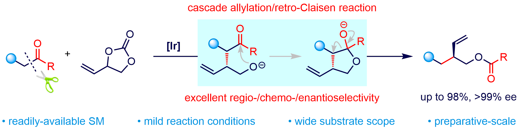 王春江/董秀琴团队在铱催化不对称串联反应方面的最新研究进展。论文题为“铱催化不对称串联烯丙基化/Retro-Claisen反应”(Iridium-Catalyzed Asymmetric Cascade Allylation/Retro-Claisen Reaction)。博士生易智远为论文第一作者,王春江教授和董秀琴副教授为论文的共同通讯作者。