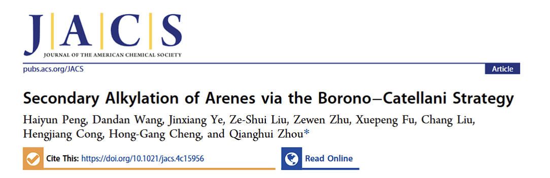 /泰康生命医学中心/高等研究院周强辉课题组在《美国化学会志》(Journal of the American Chemical Society)发表了题为 “Secondary Alkylation of Arenes via the Borono-Catellani Strategy”的研究论文。该研究展示了一种高效制备α-芳基羰基衍生物的创新合成方法,系多取代芳烃合成领域的一项重要进展。骰宝