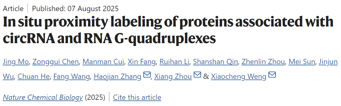 翁小成/周翔团队联合医学研究院张好建课题组在《自然·化学生物学》(Nature Chemical Biology)在线发表题为“In-situ proximity labeling of proteins associated with specific circRNA and RNA G-quadruplex”的研究论文。莫婧博士、陈宗贵博士、崔嫚嫚博士为本文的共同第一作者,翁小成教授、周翔教授和张好建教授为论文的共同通讯作者,骰宝