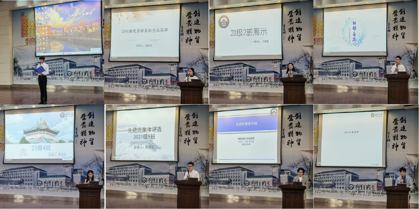 在评选会现场,各班代表纷纷展示了各自独具特色的班风班貌:2021级1班制定了“秘密学习计划”,提高大家的成绩;2021级2班展示了他们寓意独特的班徽;2021级3班每两周周五的晚上雷打不动聚在一起,与班助交流,邀请学长学姐们分享经验;2021级4班的班级成员积极活跃,几乎每个社团或者部门中都有4班同学的身影;2021级5班注重思想引领,积极组织团日活动,班级成员青年大学习的参学率位于年级前列;2021级星拱班的氛围轻松,劳逸结合,经常组织心理班会等增强班级凝聚力的活动;2020级弘毅班积极举办教授午餐会活动,结合班级特点,创造性地开展科研答辩会,提升科研积极性,加强师生交流。