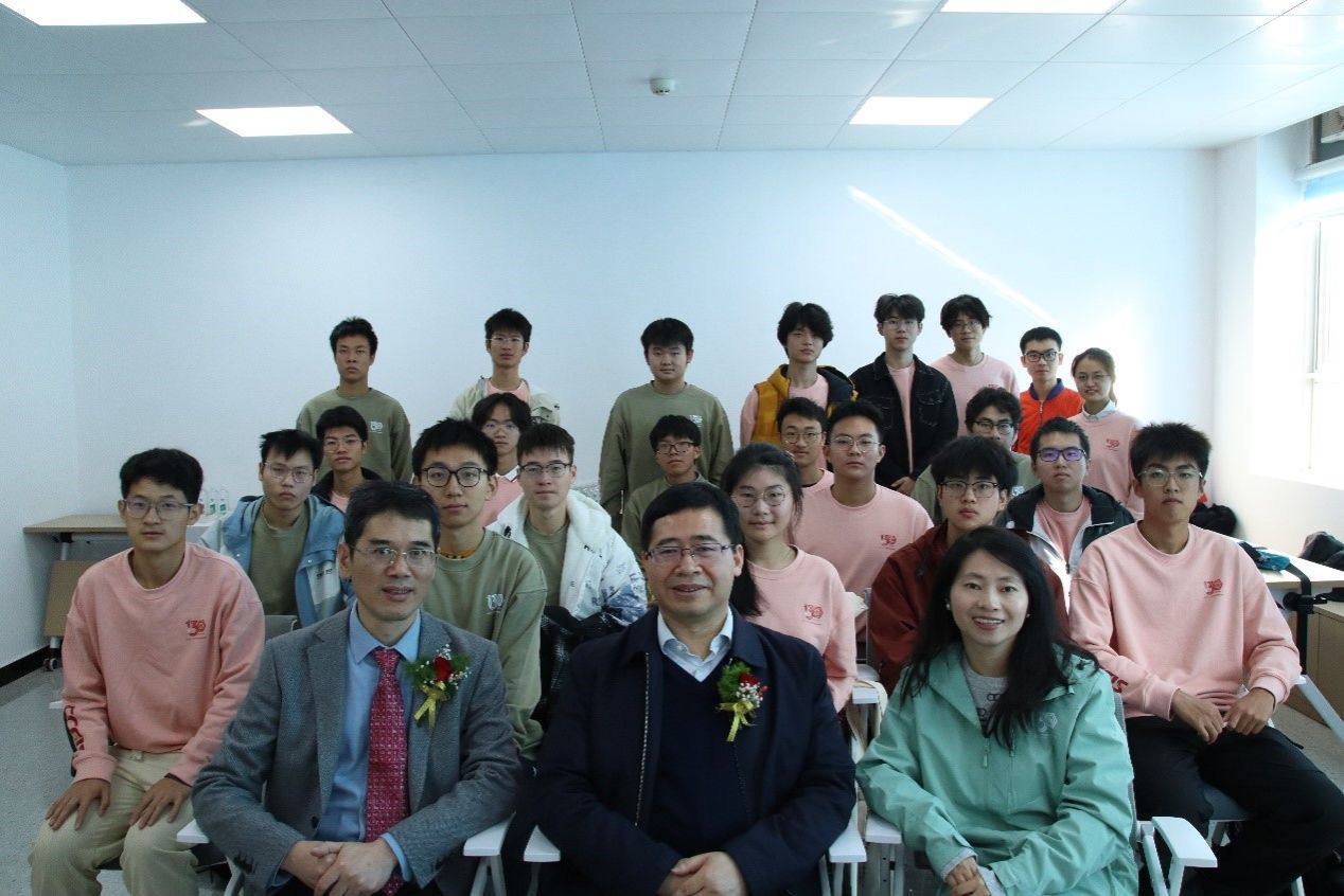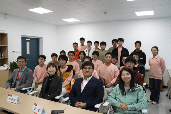 学院周金平副院长、大连化学物理研究所王峰副所长、2023级“新能源自强班”班级导师肖丽老师与2023级新能源自强班全体学生座谈合影