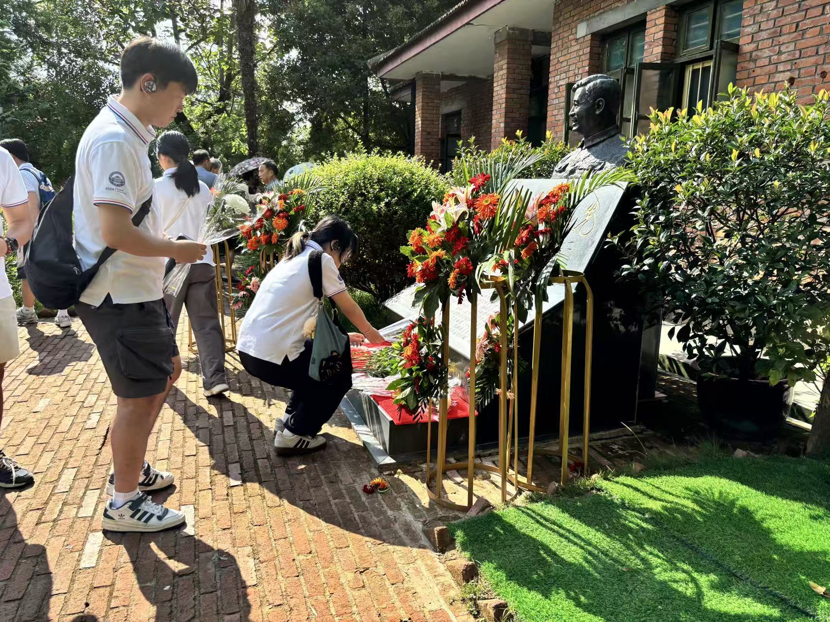 在邓稼先旧居,师生们怀着崇敬的心情向铜像献花,参观了这位 “两弹元勋”曾经工作和生活过的地方。狭小的房间、简单的陈设,展现出邓稼先艰苦奋斗、克己奉公的伟大精神。