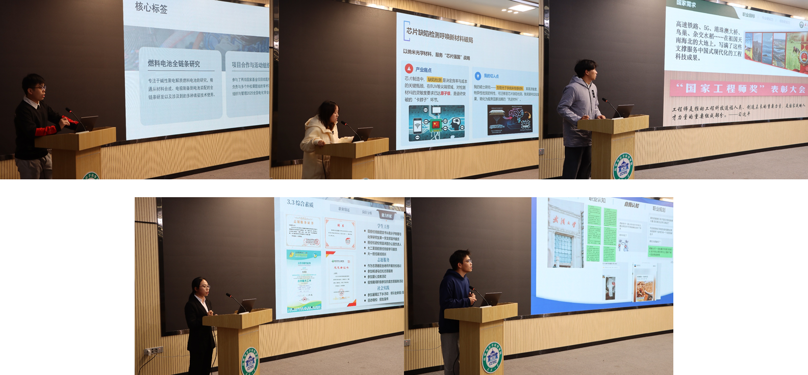 在主持人对赛道设置和展示流程进行了简要介绍之后,宣布比赛正式开始。成长赛道的展示环节首先进行,桑恩惠、崔淼、何芊凝三位选手依次从科研探索、专业学习、兴趣培养到未来方向展示了多维度的成长规划。评委结合行业发展趋势与个人实际情况,从阶段目标设定、行动方案可行性、关键能力提升等方面给予专业点评。例如,有评委提出应更重视从具体实际案例的剖析中发掘个人潜力,也有建议加强对相关行业的长期调研和岗位匹配分析。