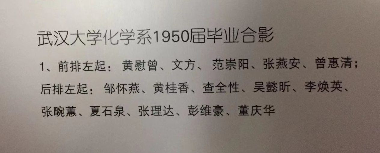 武大化学系1950届毕业生合影名单_王辉老师提供