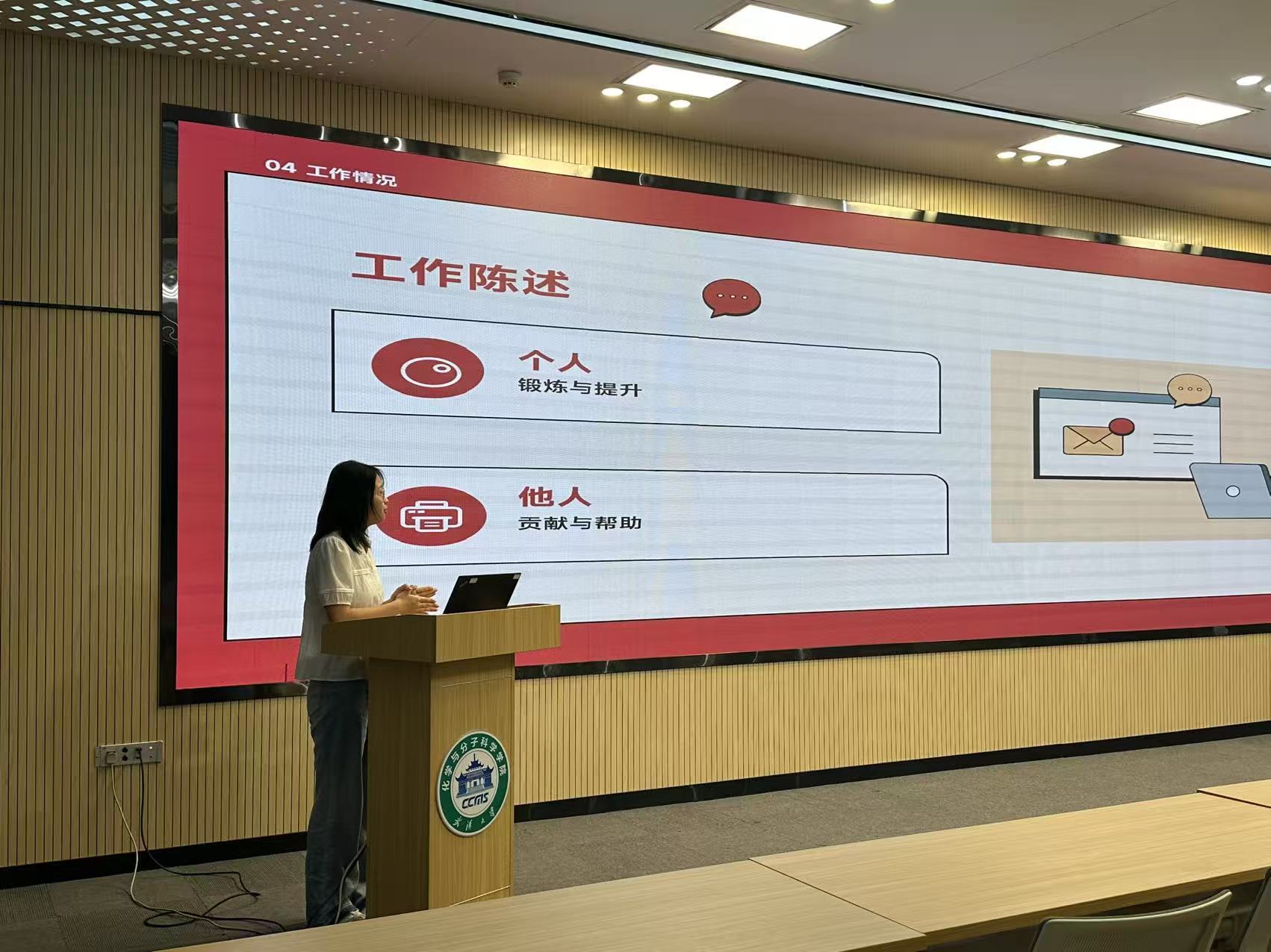 优秀共青团干部评选答辩会。学院团委书记武凌宇老师,团委副书记曾家昱老师、刘彦铄老师参加会议。