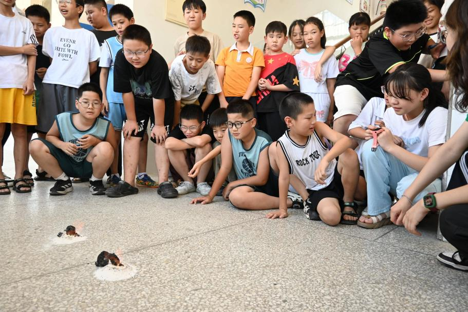 小朋友们观察科普实验现象