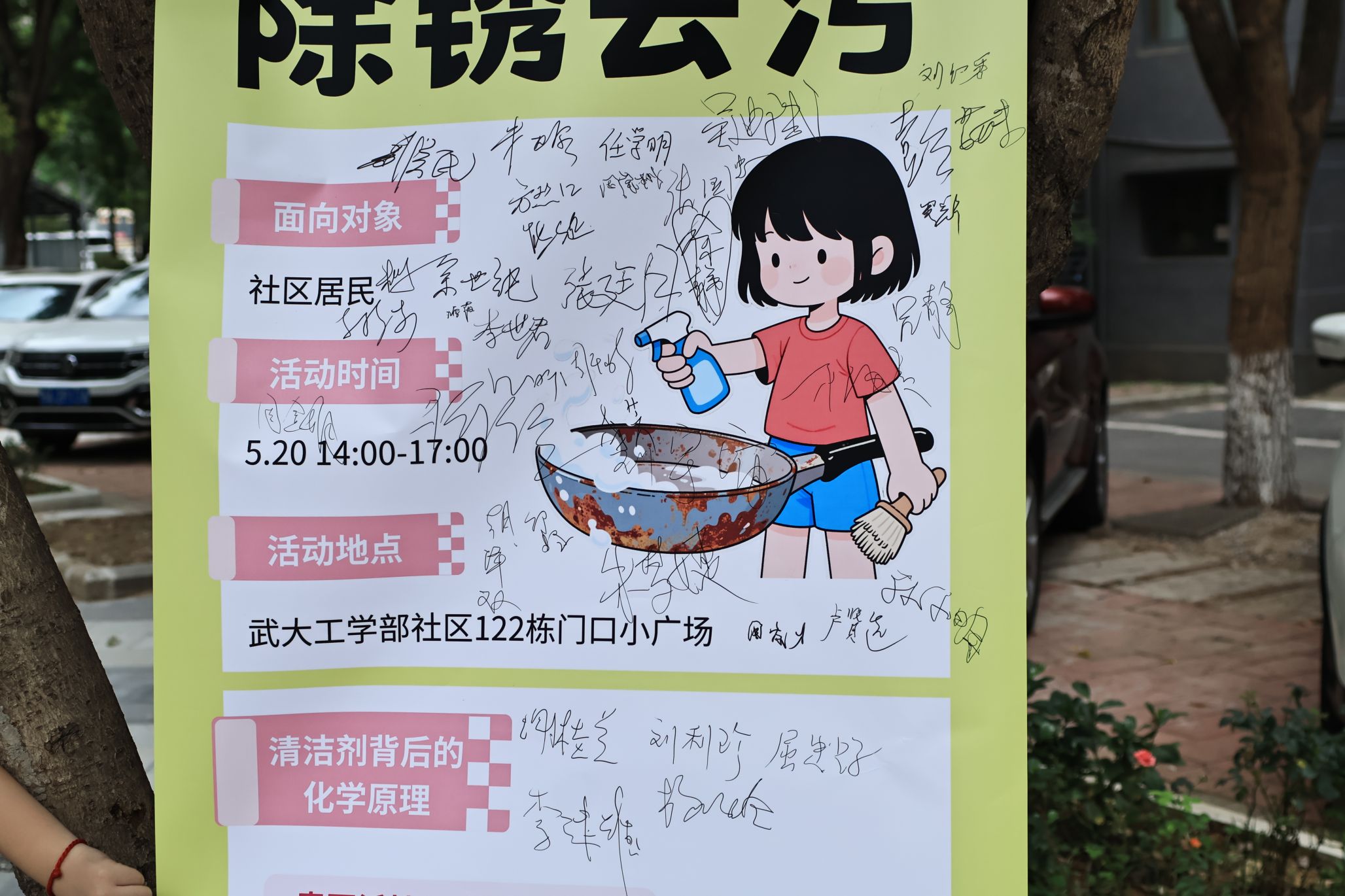 夕阳西下,随着最后一个锅具刷洗完毕,本次团日活动也暂时告一段落。活动充分践行了习近平总书记的回信精神,将化学知识与社区服务紧密结合,不仅为居民们带来了切实的便利,同时还增强了团员青年们的社会责任感,启发和鼓励同学们将自己的学识运用到生活中,为解决老百姓的民生难题贡献知识与智慧。未来,2022级星拱班团支部与“清泉计划”社团功能型团支部将继续以实际行动和专业知识为社会添彩、为基层助力,共同书写属于化院学子的青春华章!