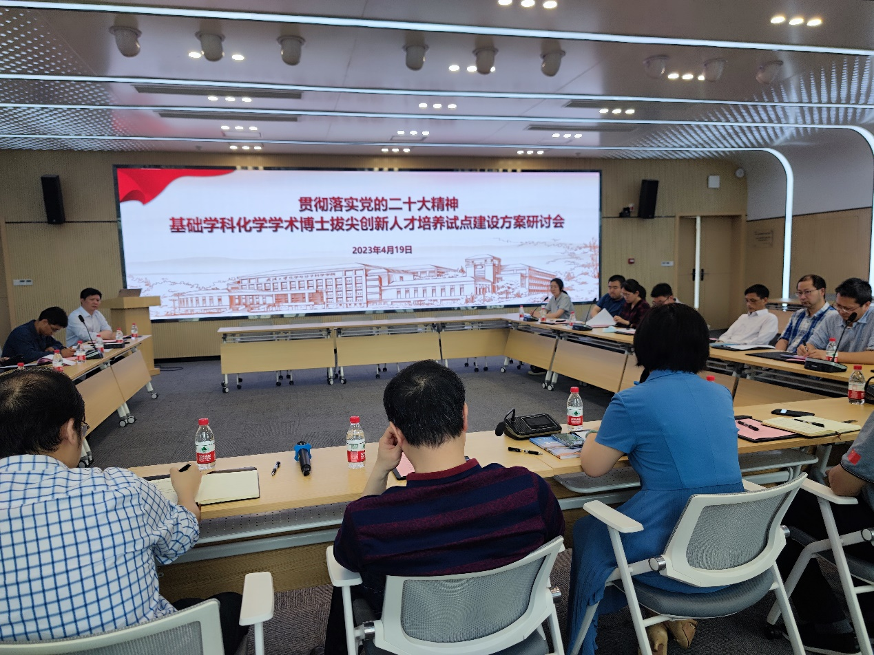 院党委书记王丽萍传达了学校关于研究生拔尖创新人才培养试点工作的会议精神和相关要求。她强调,培养拔尖创新人才是贯彻落实党的二十大精神的核心要求,也是我们肩负的重要使命。学院作为学校此次研究生拔尖创新人才培养改革的两个试点单位之一,要高度重视、解放思想、创造性地制定建设方案、创新型地推进改革试点。在总结凝练学院人才培养相关改革举措的基础上,努力探索化学“双一流”学科拔尖创新人才培养新模式,致力培养出中国化学界乃至世界化学界的顶尖人才。